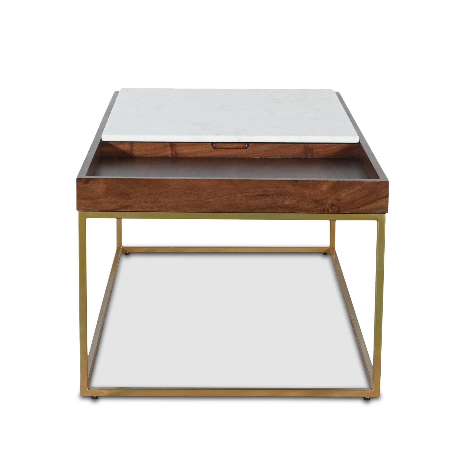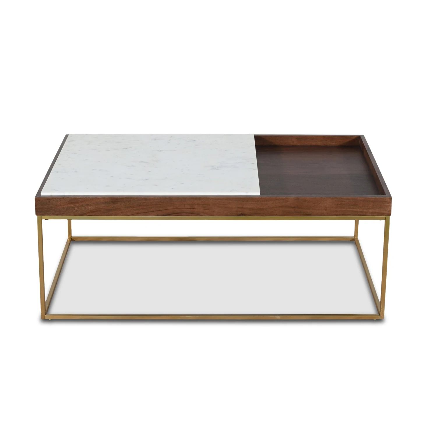 - Crafted with premium smooth marble and reclaimed mango wood in a walnut finish