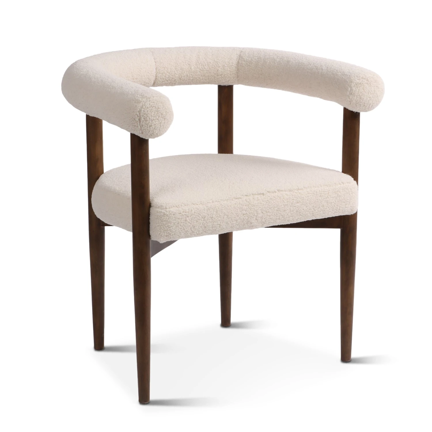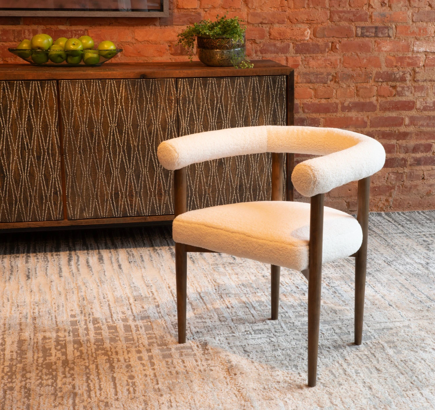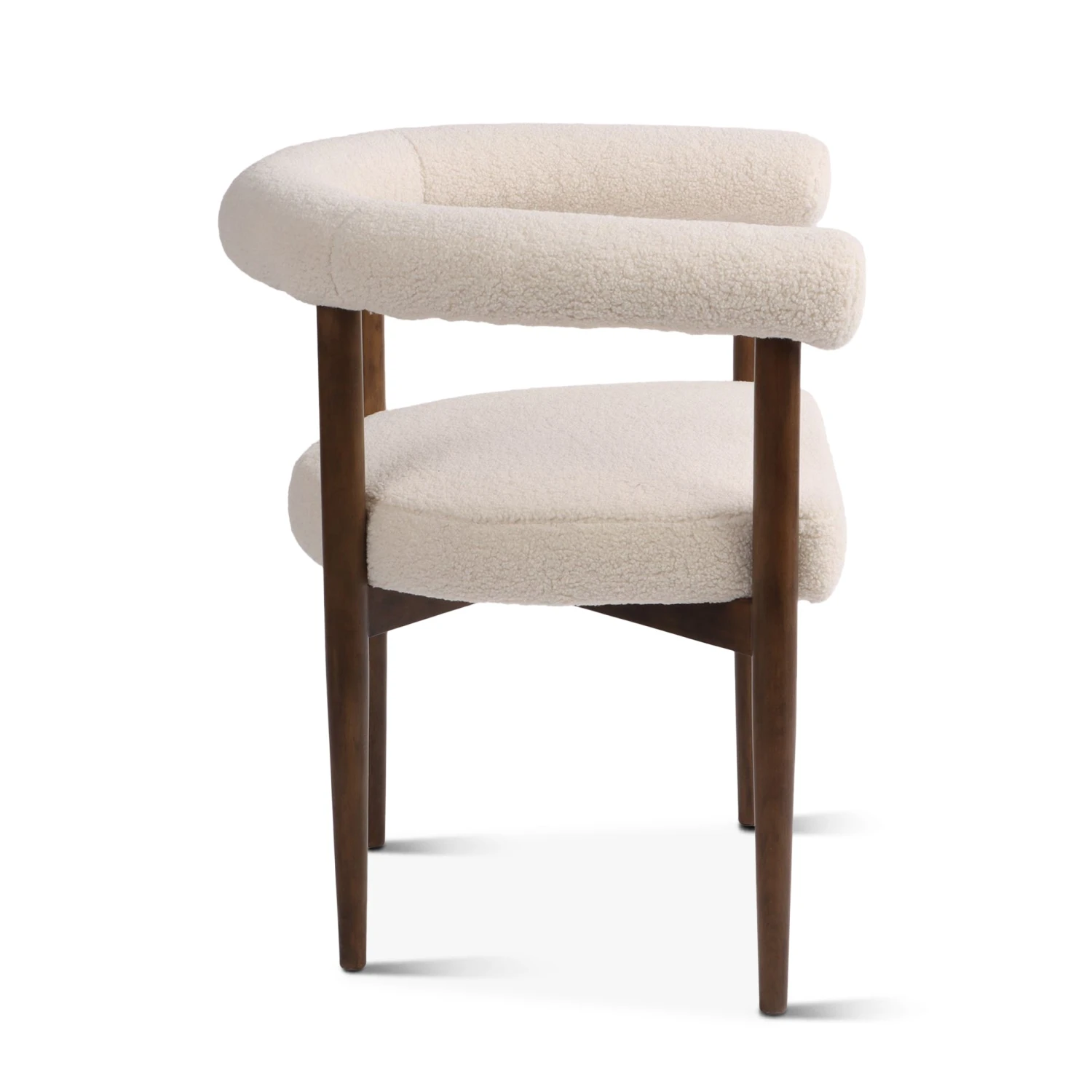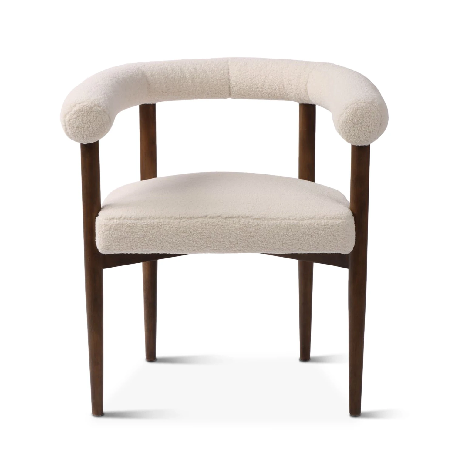 Blending retro-inspired design with modern style, the Ava Arm Chair delivers style and comfort to any living space. This comfortable armchair features a clean white upholstery that is both durable and easy to clean. The seat cushion is generously padded with high-quality foam, offering exceptional comfort and support for long periods of sitting.