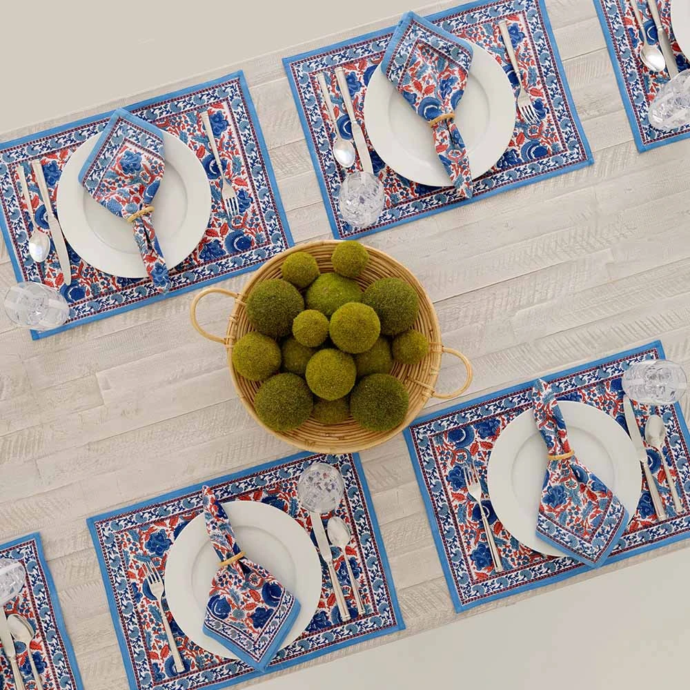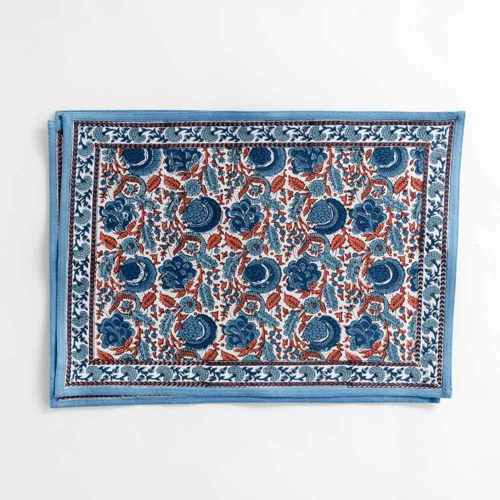 Bohemian Floral Blues & Paprika Placemat | Set Of 4