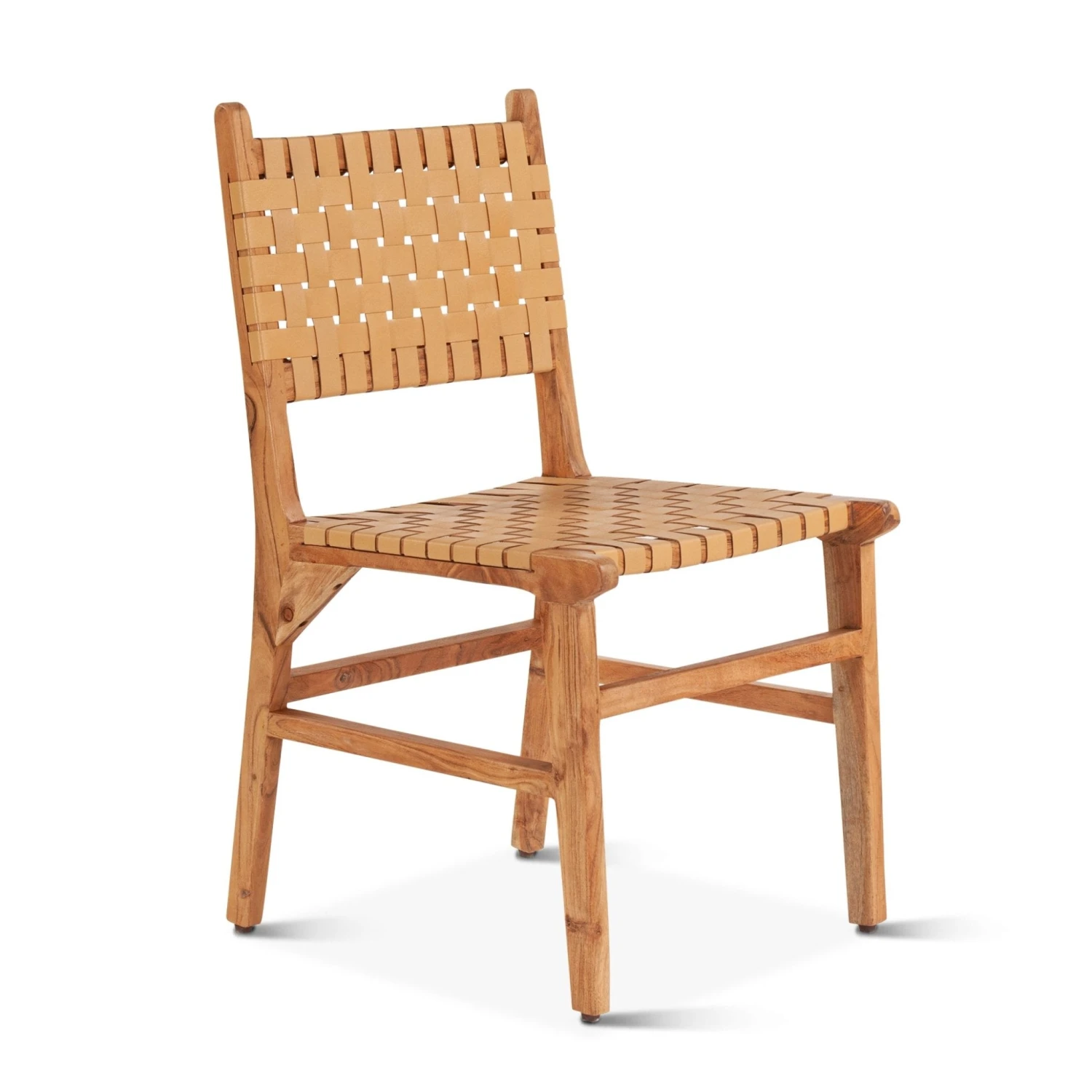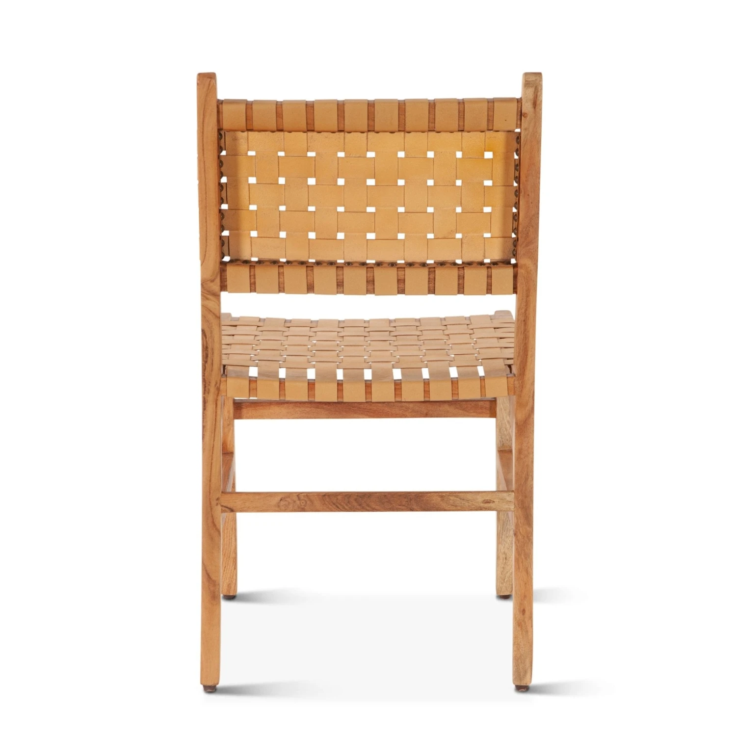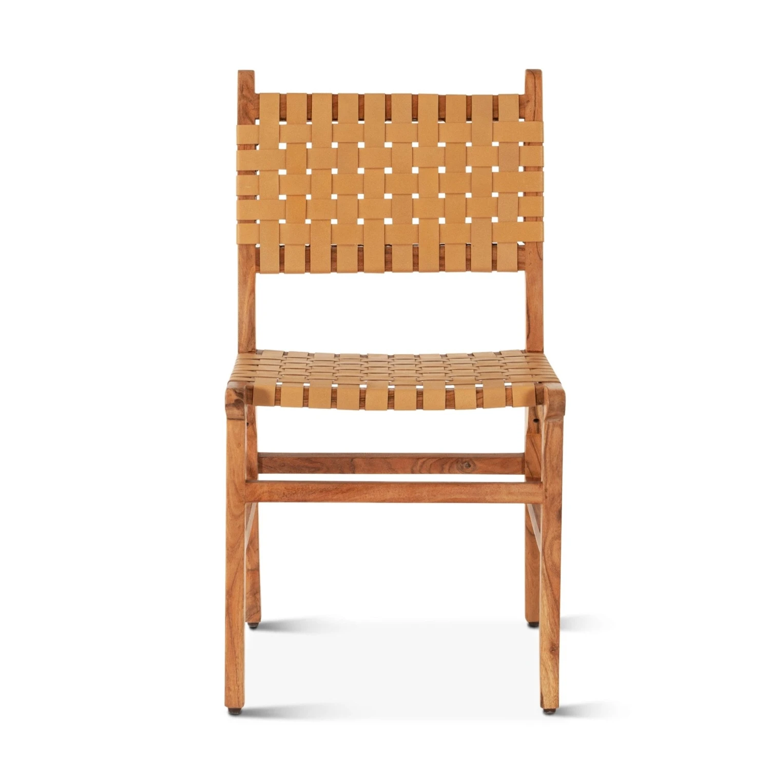 Effortlessly blending bold and vibrant elements with sleek and sophisticated design, the Catalina Collection creates a truly unique and stunning look for your home. This dining chair’s sleek, contemporary design is paired with a sturdy frame made of solid natural acacia wood finished to perfection. The backrest and seat are woven from genuine leather, providing a luxurious texture that adds depth and dimension to any dining room. Our natural wood finish and top grain leather weave work together to create an inviting ambiance that will make any meal a memorable one.Â