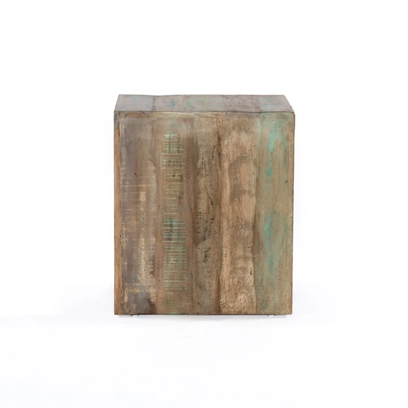 - Vintage teal finish of the table is hand-applied and moisture resistant, and enhances the patina look of the piece while melding perfectly with the modern style