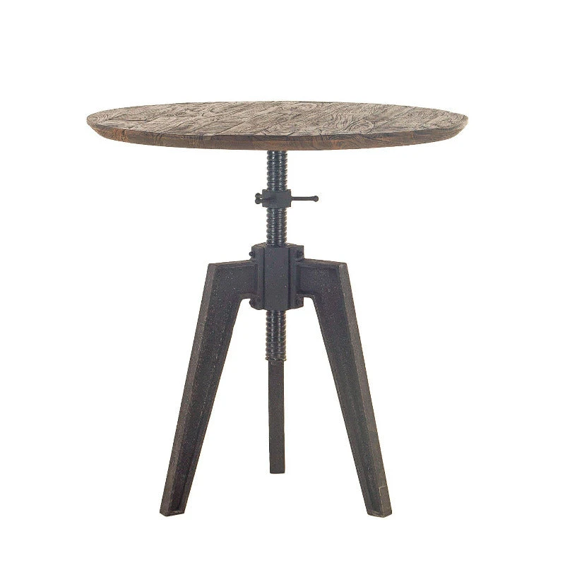 Affixed to the bottom of the table top is a cast iron rod that threads into the tripod base, allowing the table top to be spun 360° to whatever height works best for your needs.
