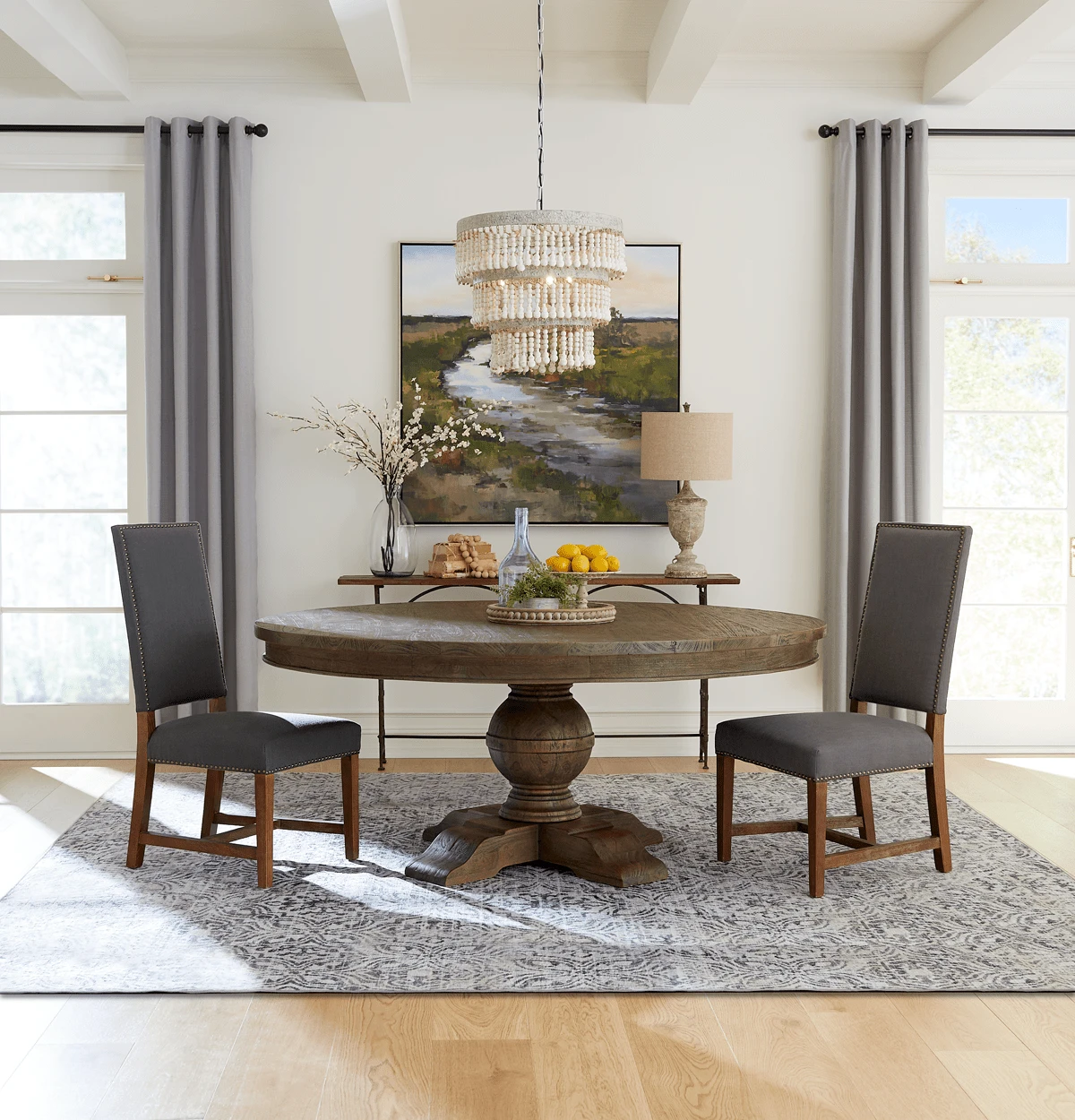 - Solid oak frame with distressed gray wash