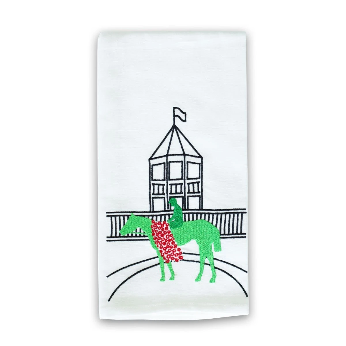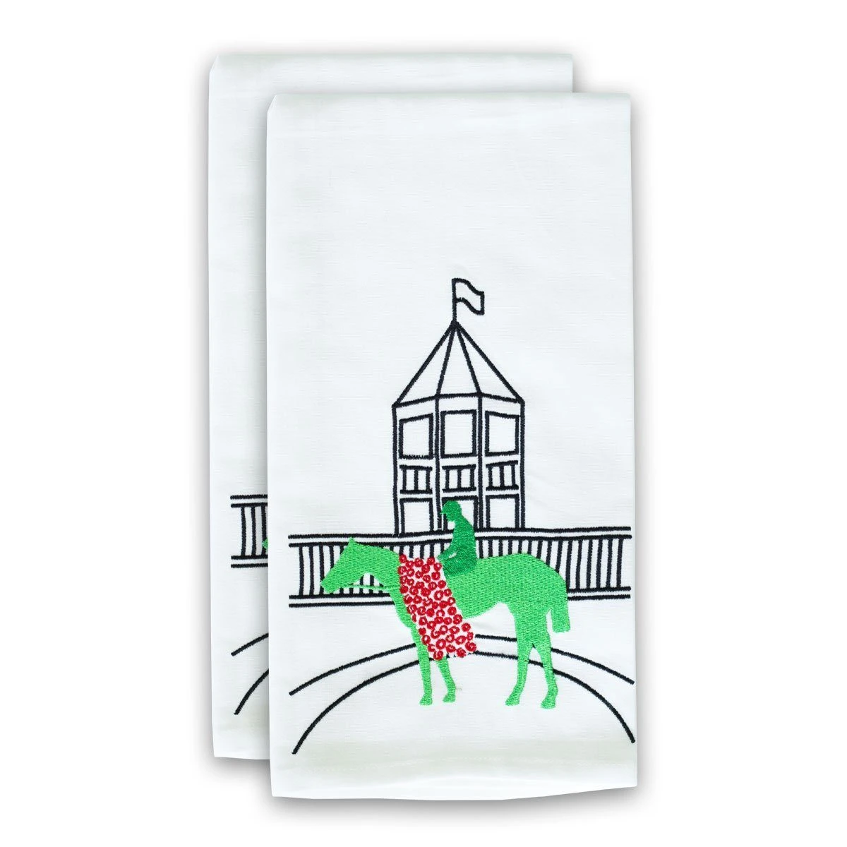 In a striking silhouette in a lively green and rose, our limited edition Derby Winner Embroidered Hand Towels are the accessory for any Derby party.