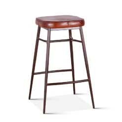 Chiavari Industrial Modern Leather Counter-Height Stool, Set Of 2
