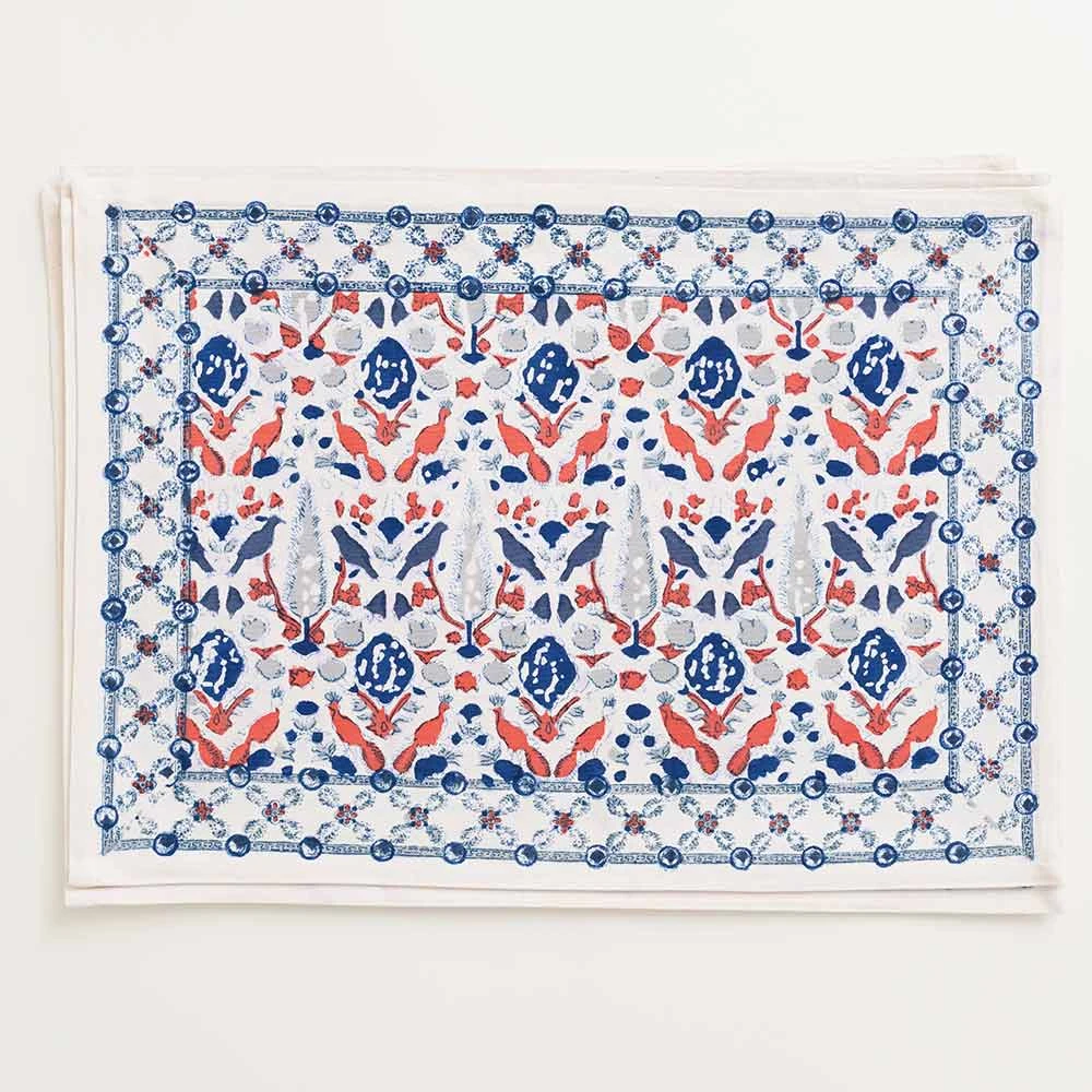 Dove & Cypress Blue & Persimmon Placemat | Set Of 4