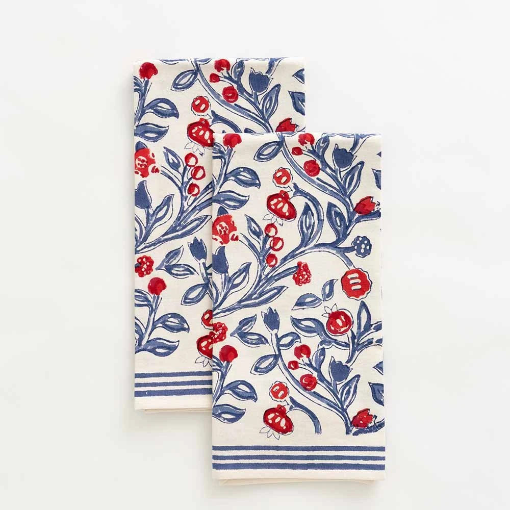 Our vintage Emma print has been going strong for over 25 years. This updated red, white and blue version is patriotic and all-American. Think Memorial Day and 4th of July, summer picnics and clam bakes. Who can ever have enough tea towels? Great for gifting and updating your kitchen textile drawer.