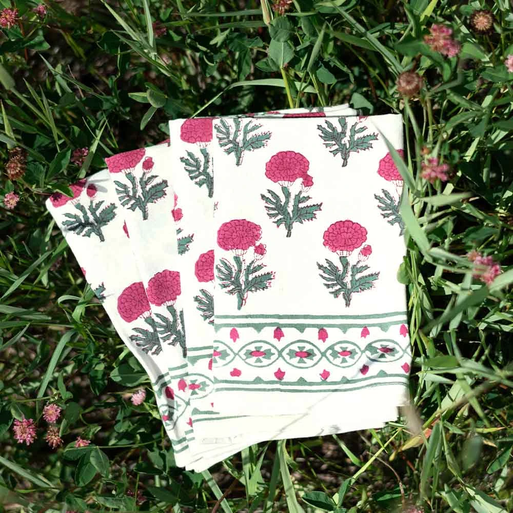 Named after an ancient and holy city in India, our Gaya Rose napkins capture the splendor, mystery and beauty of the Asian subcontinent. Printed by hand using rich dyes and carved wooden blocks to achieve a one-of a-kind design, these cotton dinner napkins make a striking display on your formal tabletop.