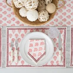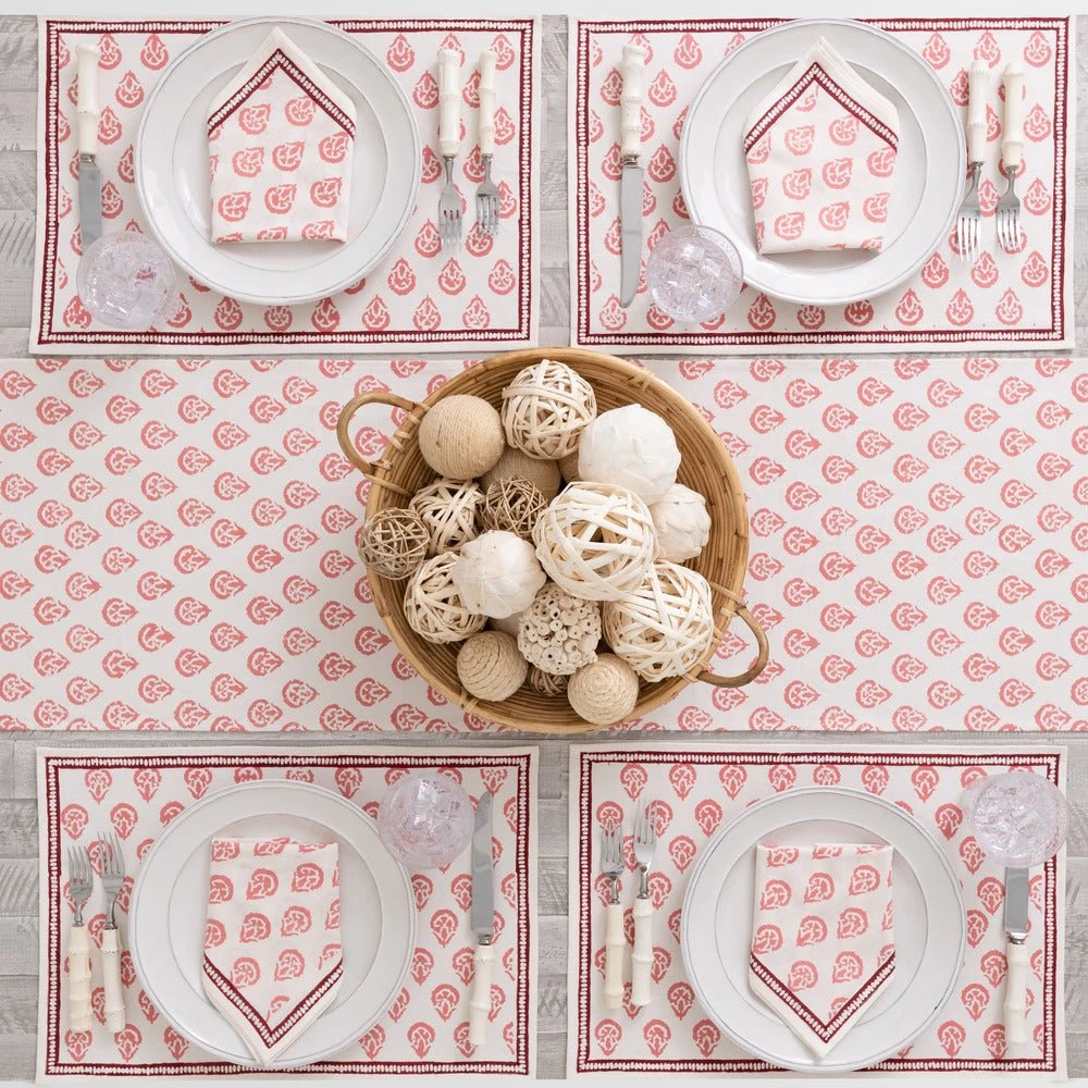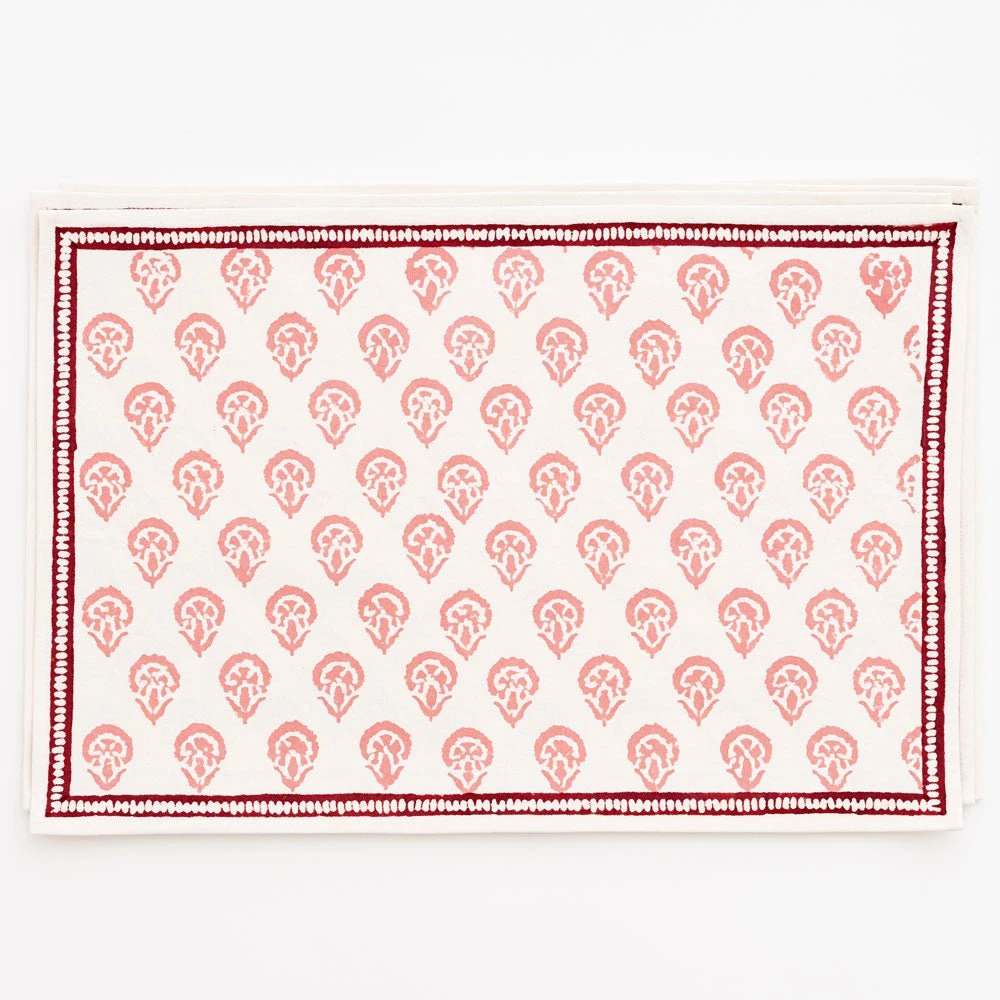 This beautiful set of 100% cotton hand blocked printed placemats in Carnation Blush is intended to be mixed haphazardly together with the other patterns, just as our families are.
