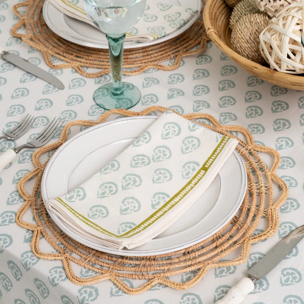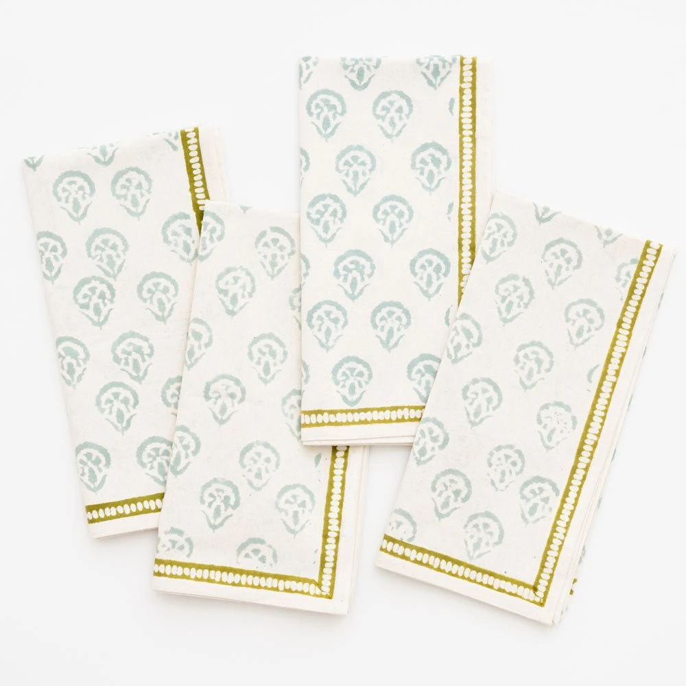 This beautiful set of 100% cotton hand blocked printed napkins in Carnation Seafoam is intended to be mixed haphazardly together with the other patterns, just as our families are.