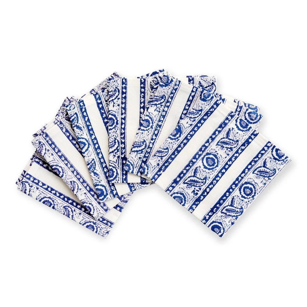 The plump and pleasing shapes from a favorite scarf of my fathers are reimagined here as shells picked up on a sandy beach. These cocktail napkins are a delightful fusion of childhood memories and coastal beauty.