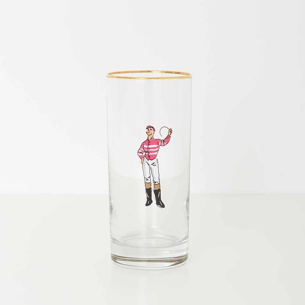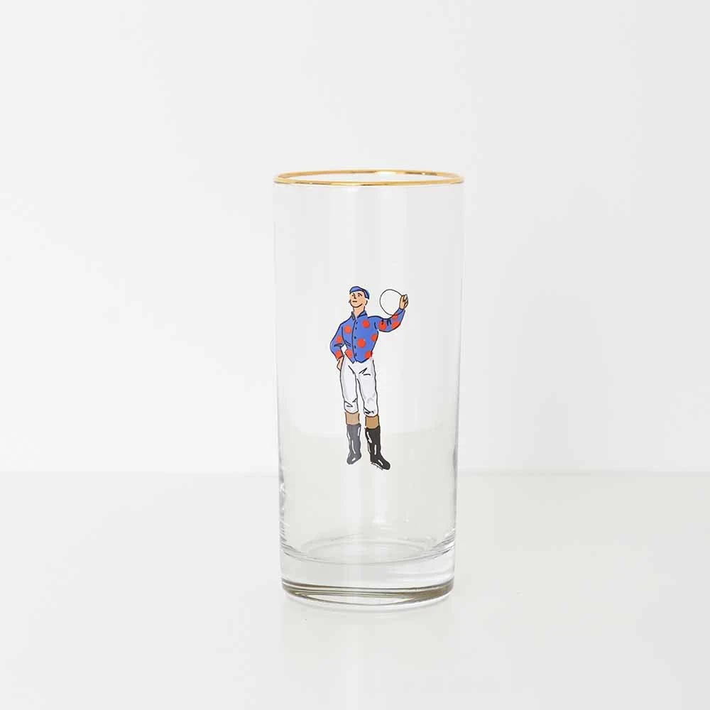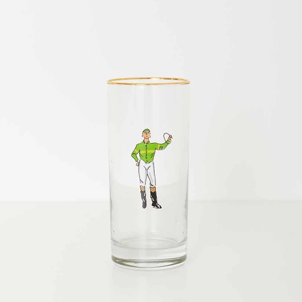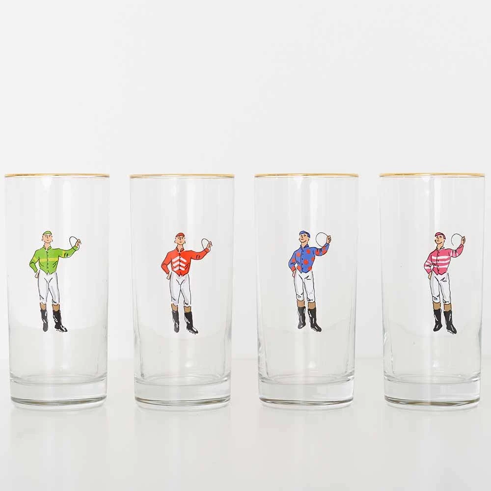 Off to the races! For the equestrian enthusiast, elevate your glassware collection with our Jockey Silks Highball Glasses. Featuring four unique jockeys in bright colored silks and a gold metallic rim, this glass brings sophistication to both everyday and formal gatherings.