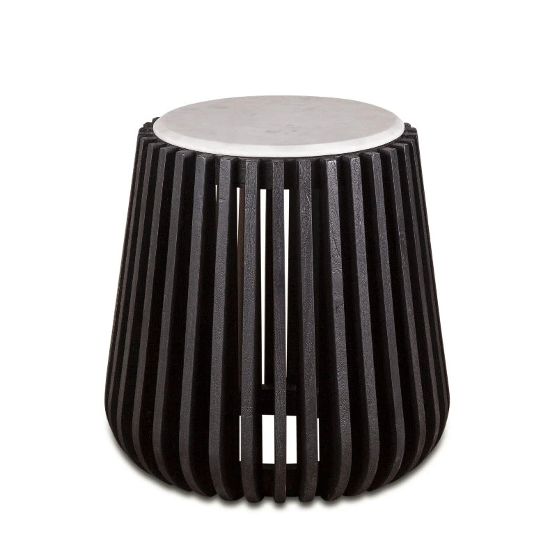 The Lisbon collection side table features solid mango wood and a natural stone marble top. The mid-century modern design of the furniture in the Lisbon collection features simple clean lines and an open airy feel, lending to the contemporary modern look.