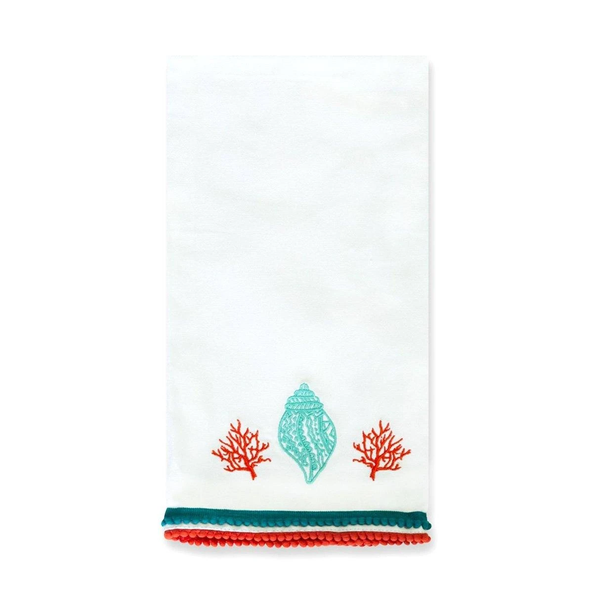 With a cool and calming color palette of teal and coral, our Lyford Embroidered Hand Towel will transport your space and guests to a seaside oasis.