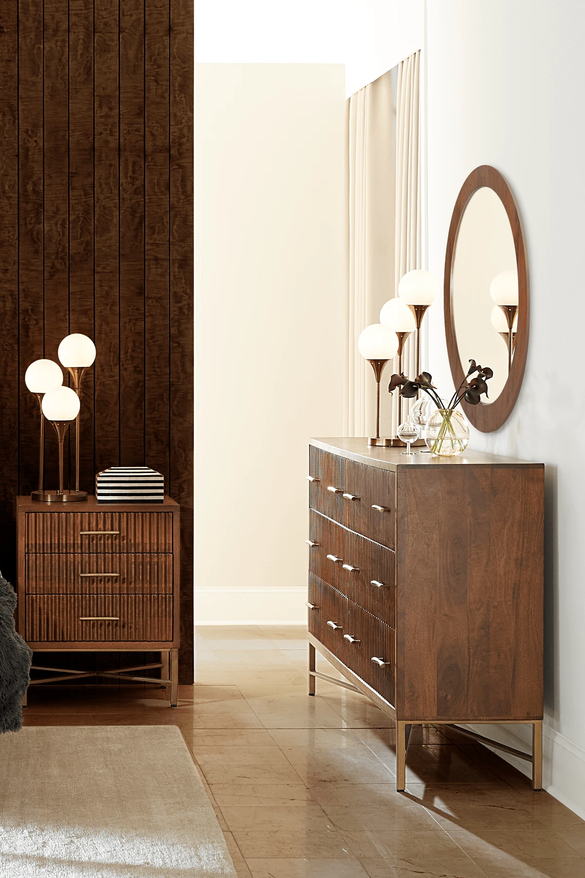 - Â Solid mango wood night chest in hand-applied, moisture resistant light walnut finish