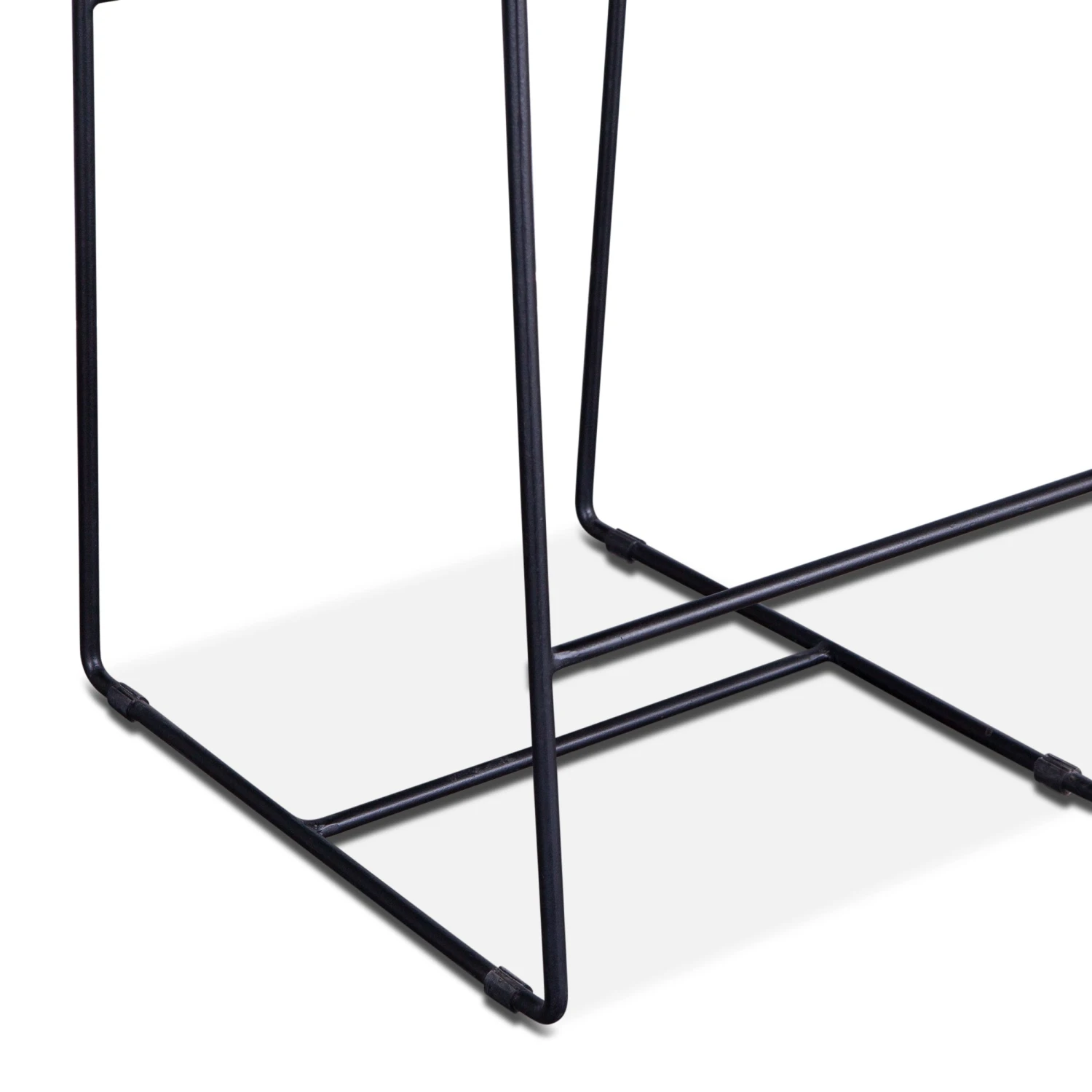 - Chair has a reclaimed iron frame and sled legs in black finish with floor protectors