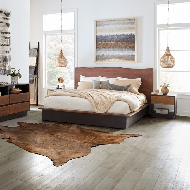 - Live edge drawer with uneven edges that contrast nicely with the clean, straight lines of the dark brown frame