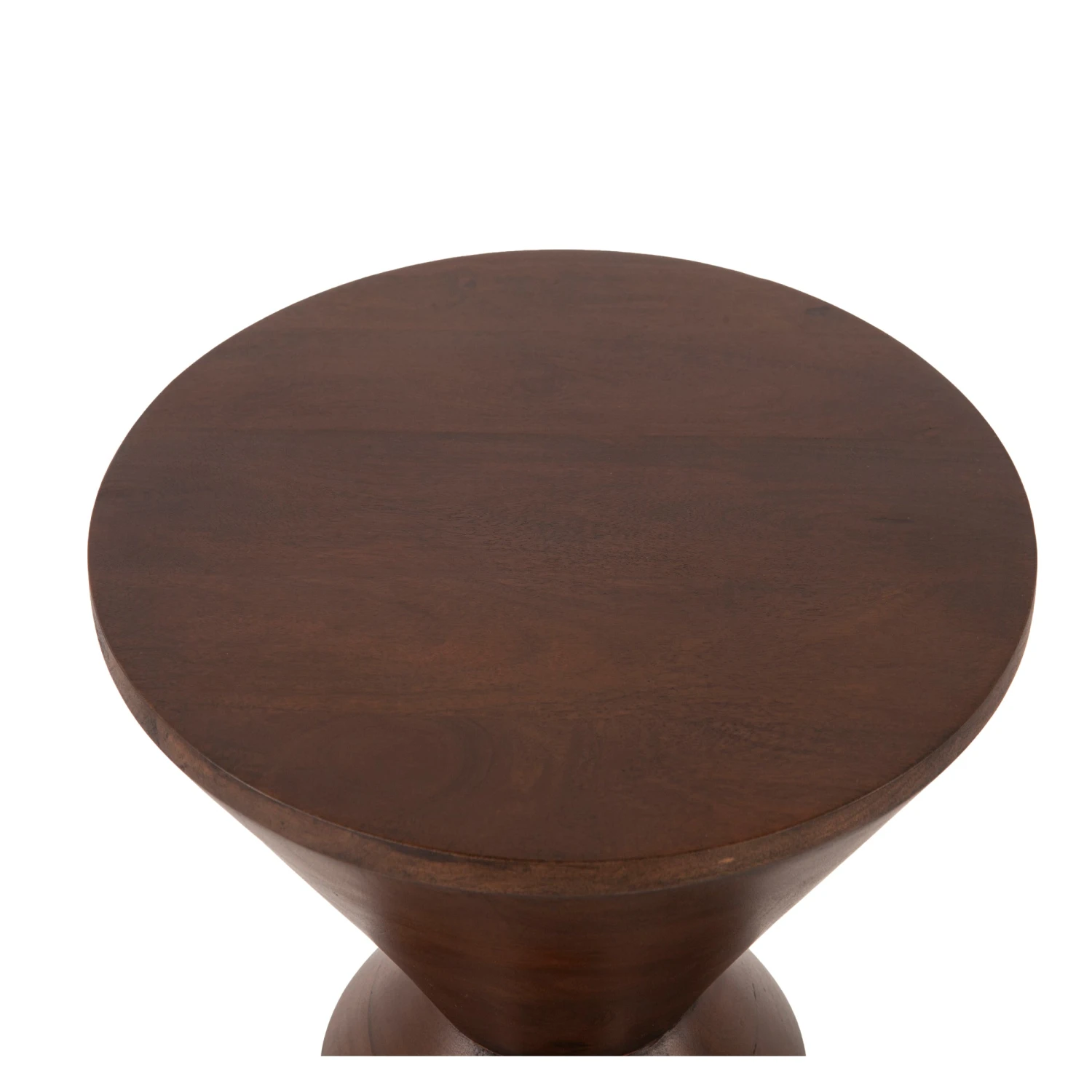 Inspired by true mid-century design, the Palm Desert collection features furniture with focus on a combination of curves and straight lines. Casual enough for a beachfront oasis, yet traditional enough for any classically designed home, the Palm Desert collection has beautiful pieces that can adorn any room in your home. This spool-shaped accent table features an elegant royal brown finish that complements the overall design. Constructed from solid mango wood, this table delivers style and stability for any setting.Â