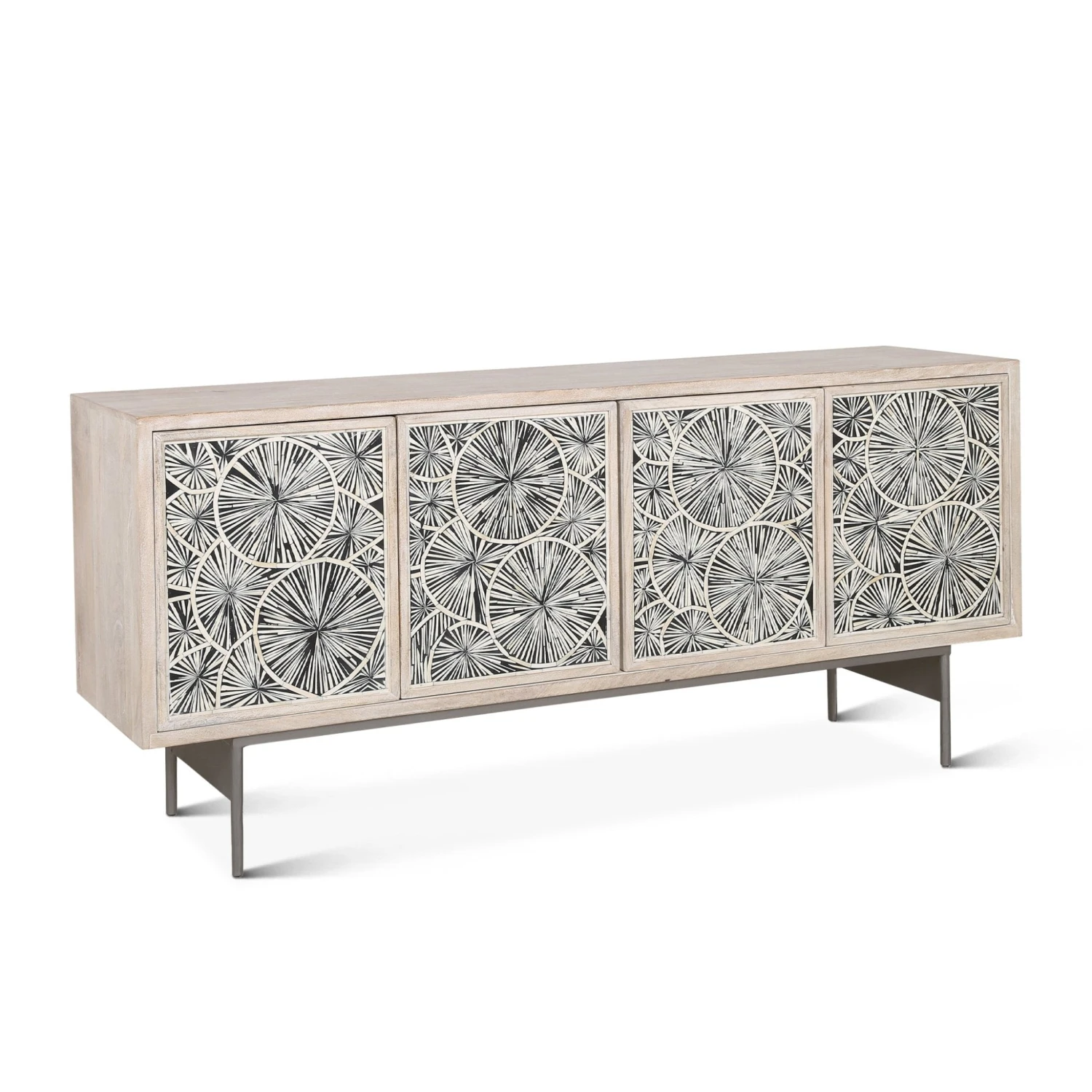 The Palm Desert Sideboard is a stylish and functional addition to any living space. Made from high-quality mango wood, this sideboard features a retro design with a unique style and a rich finish. The sideboard includes ample storage space with four cabinets, perfect for keeping your living or dining room essentials organized and out of sight. The sideboard is versatile and can be used as a buffet, media console, or storage cabinet. With its beautiful design and practical features, the Palm Desert Sideboard is a must-have piece for any home.