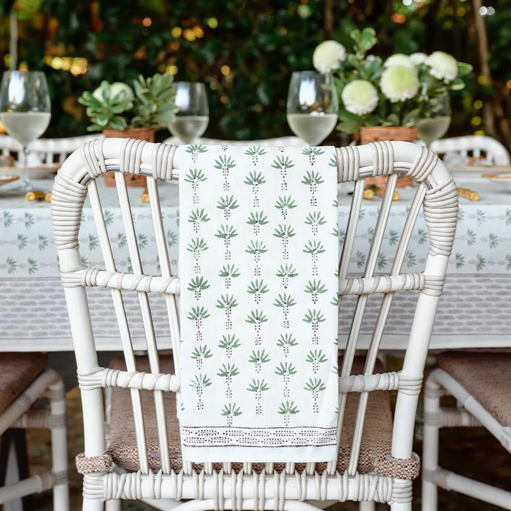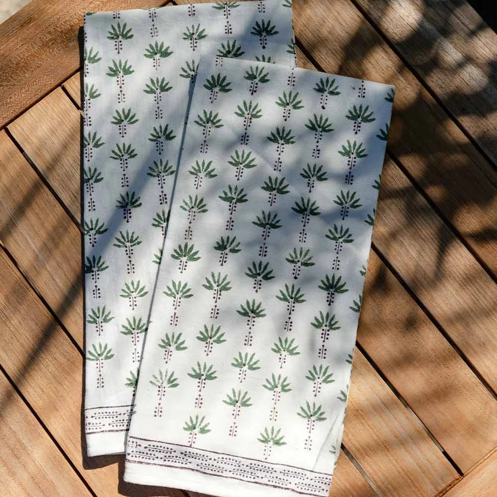 Exotic island palms stamp this island themed natural foliage green and chocolate brown kitchen tea towels. Cook in style, and complement your kitchen with these cool original kitchen textiles, that will liven up your cooking space. Complete the set with matching adjustable apron and oven mitt and pot holder set.