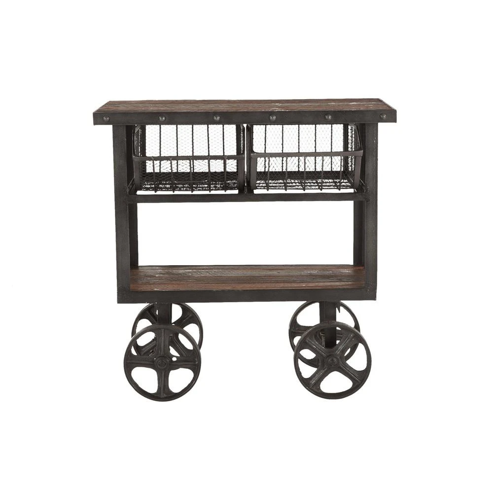 Crafted exclusively from reclaimed materials, each piece in the Paxton collection is visually stunning and is sure to make a lasting impact in your home. This utility cart’s frame is recycled iron in gray zinc finish, along with the four operable wheels affixed to the base that afford ease of transportability. With two chicken wire style drawers, you can use this cart to house anything from office or kitchen supplies to your favorite knick-knacks. The utility cart features a panel design in the reclaimed teak on the top and bottom shelf. Use this small utility cart to accent any room in your home with a functional, industrial piece of furniture.