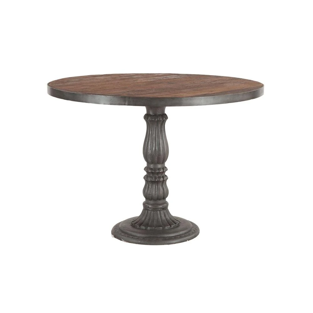 Crafted exclusively from reclaimed materials, each piece in the Paxton collection is visually stunning and is sure to make a lasting impact in your home. This 42-inch round bistro table from the Paxton collection is handcrafted from reclaimed teak wood and recycled cast iron, and features a teak plank style table top with a hand cast recycled cast iron pedestal base. This dining table requires assembly