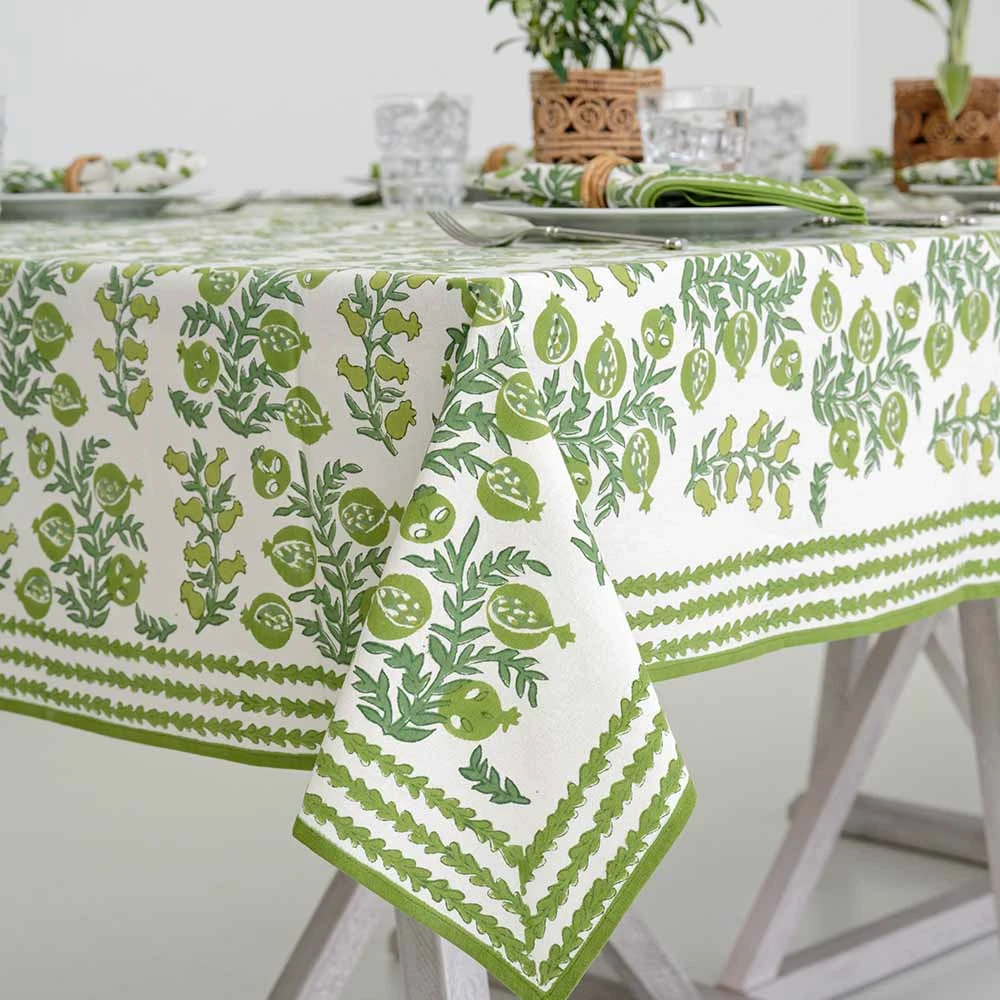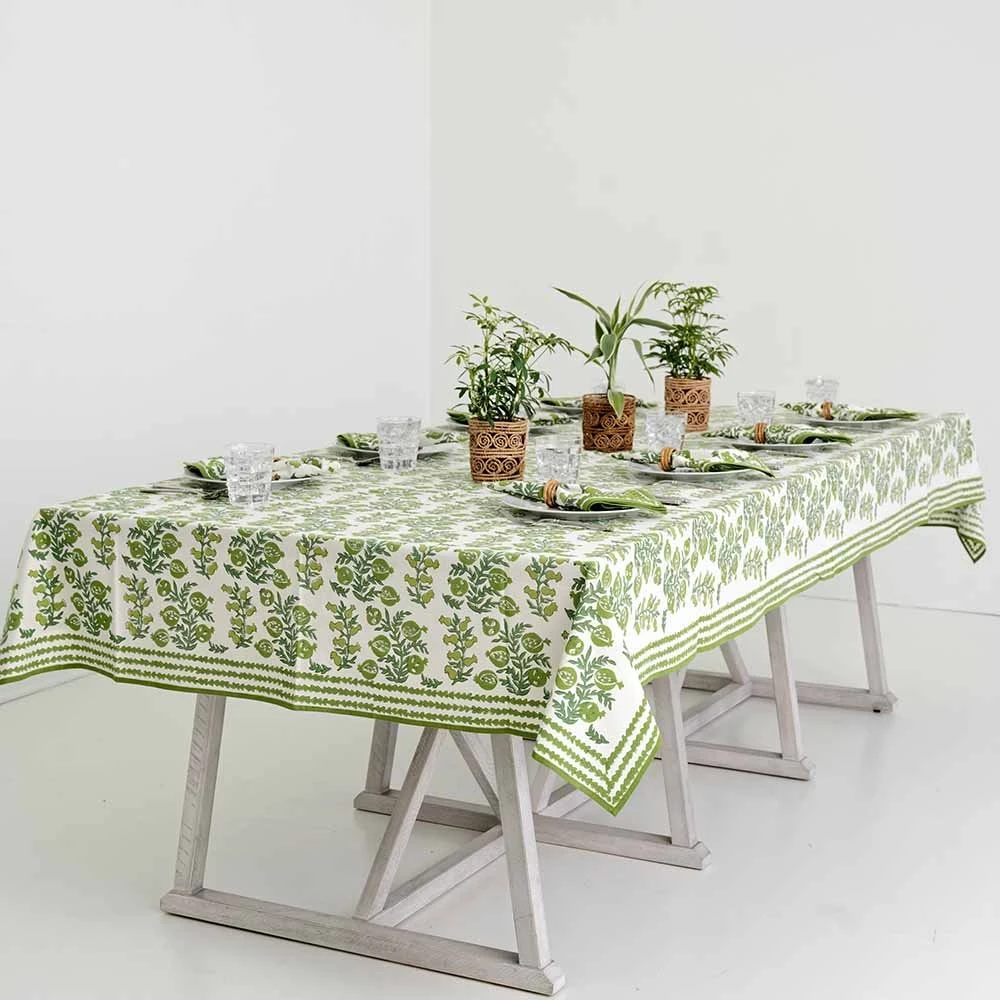 This cheerful hand block printed tablecloth will brighten up your table in assorted sizes to cover all sizes of tables. Perfect for casual everyday use as well as entertaining and gatherings with family and friends. Inside, outside, in the garden and up in the mountains, they fit in everywhere! Pair with matching placemats and napkins set to complete the elegant yet casual look. Add a pop of color to your home everyday.