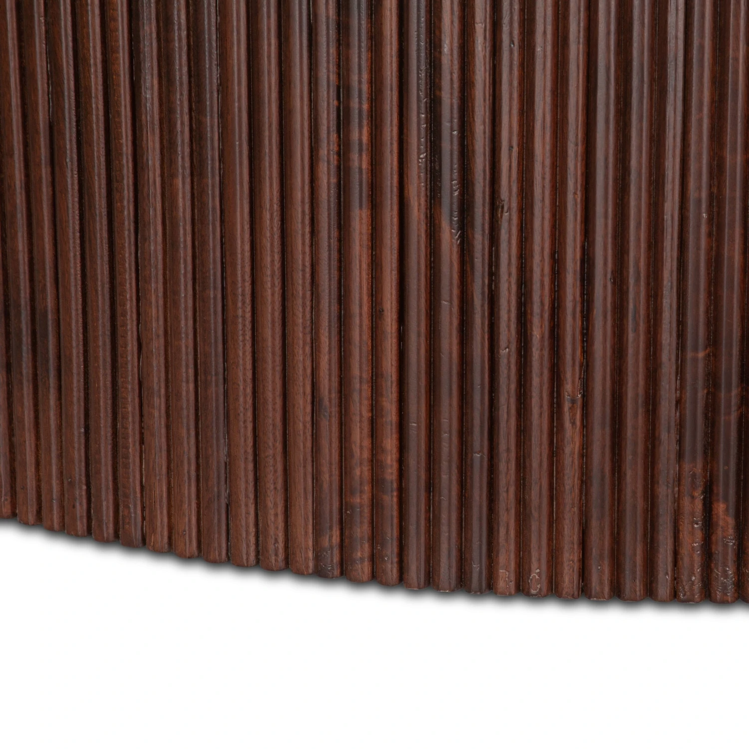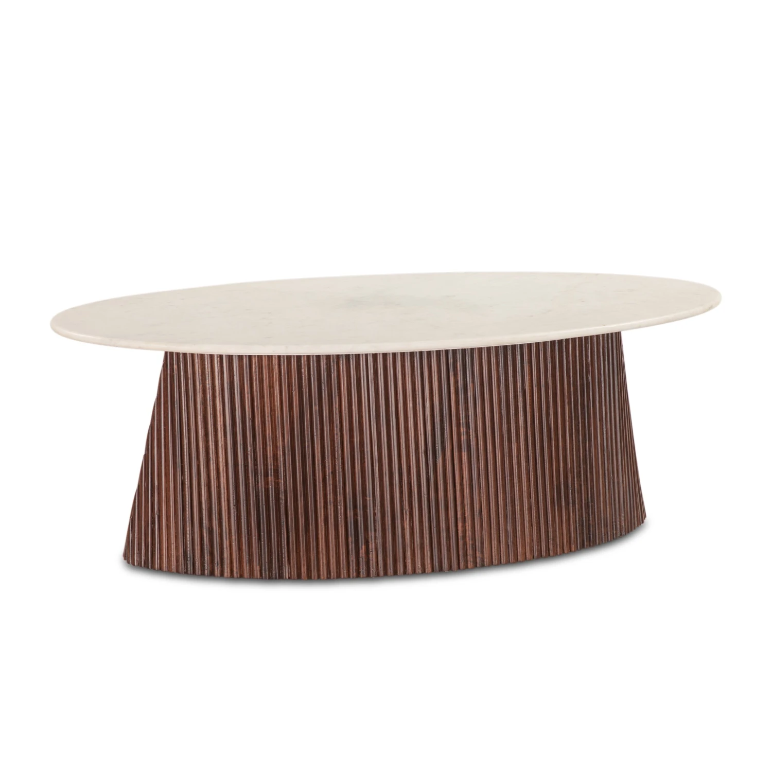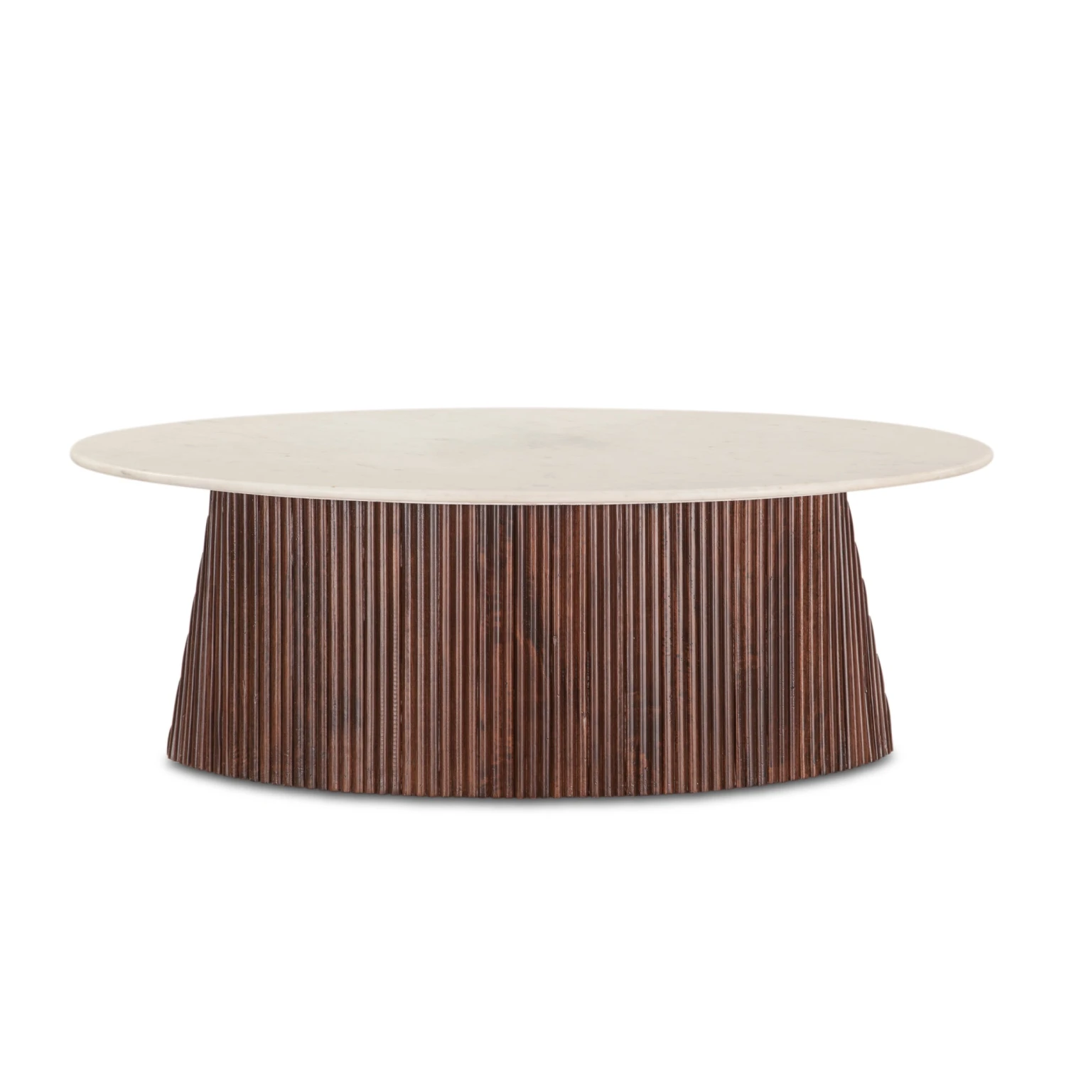 - Solid mango wood base with fluted detailing in a rich walnut finish