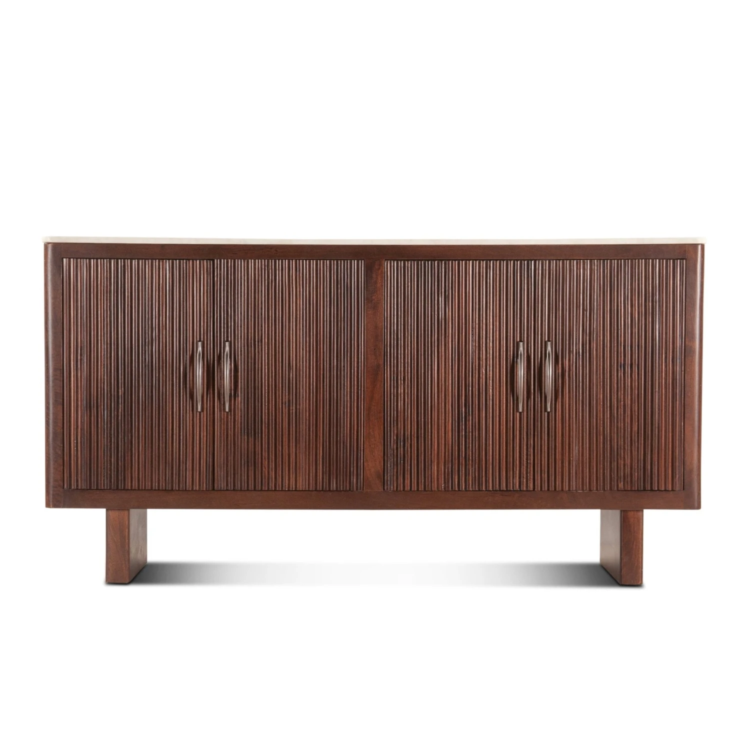 A harmonious fusion of timeless elegance and mid-century modern aesthetics, the Positano Collection is crafted with meticulous attention to detail, This collection celebrates the natural beauty of solid fluted mango wood and showcases luxurious white marble tops. Inspired by the serene coastal charm of the Italian village of Positano, each piece exudes a sense of tranquility and sophistication.