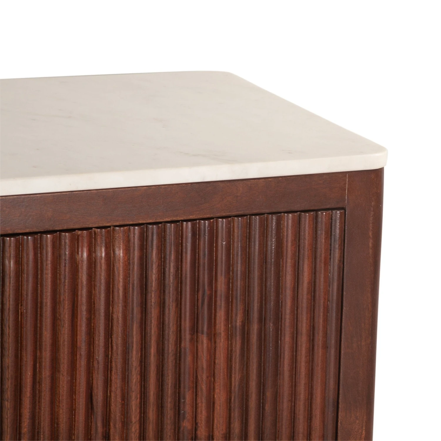 - Solid mango wood base & frame with fluted detailing in a rich walnut finish