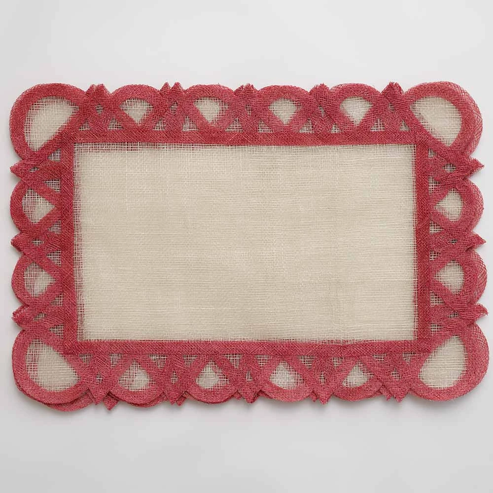 The hand-made appliqué work surrounding the border alludes to the meandering motif surrounding the Temple of Athena and Poseidon, bordering your plate like a filigree frame. These mats are practical as well; shake them off and wipe them down for your next gathering.