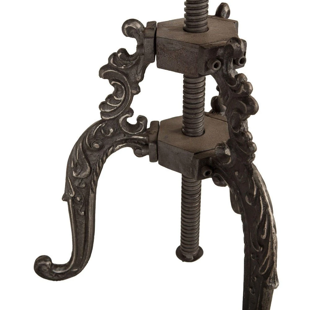 - Cast iron base includes intricate detailing and unique, antique bathtub styled feet