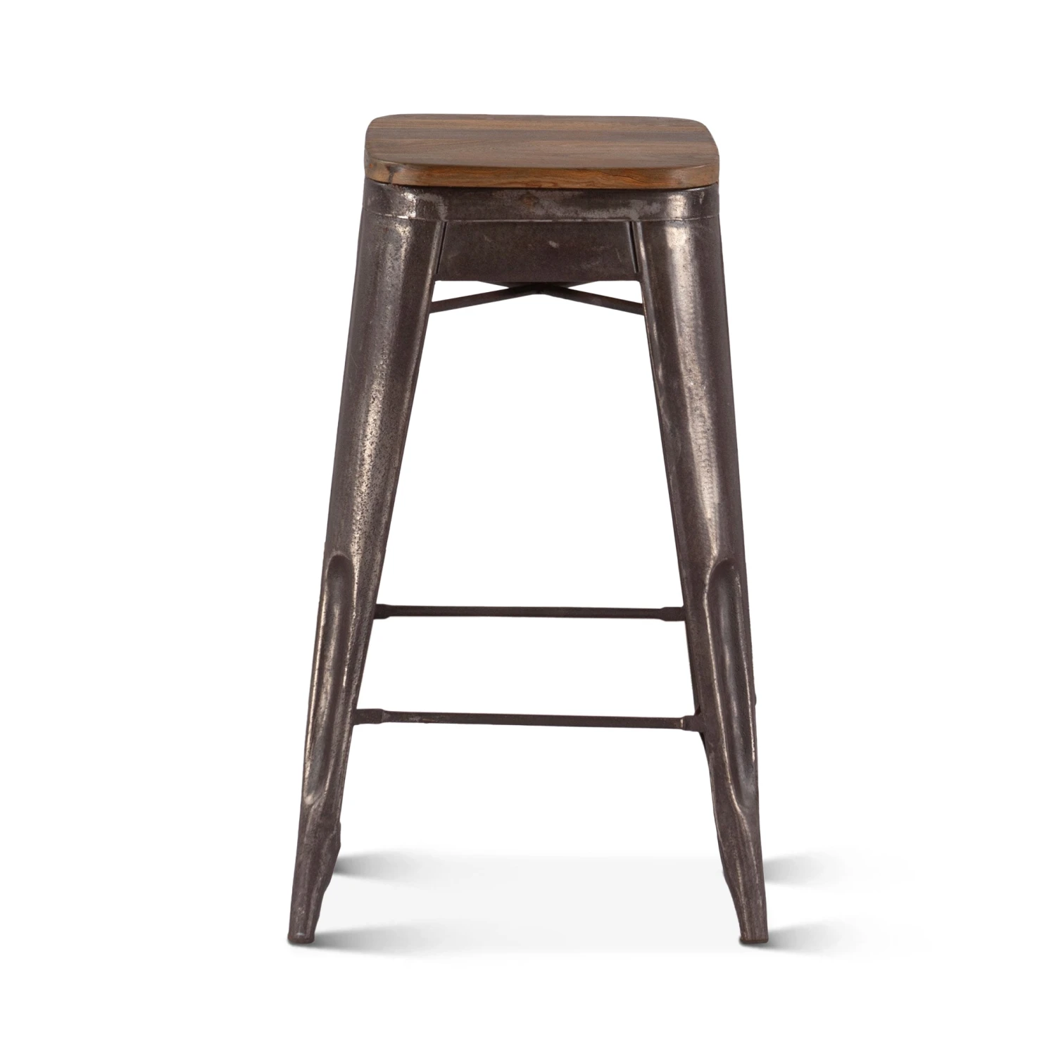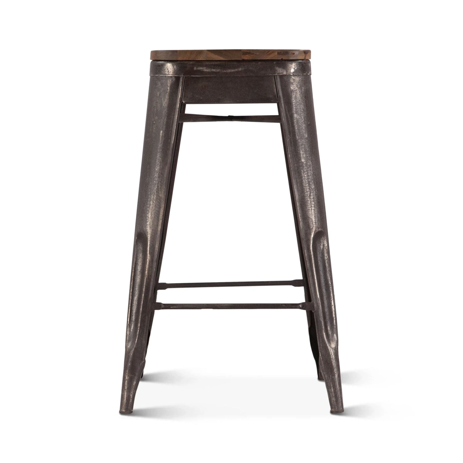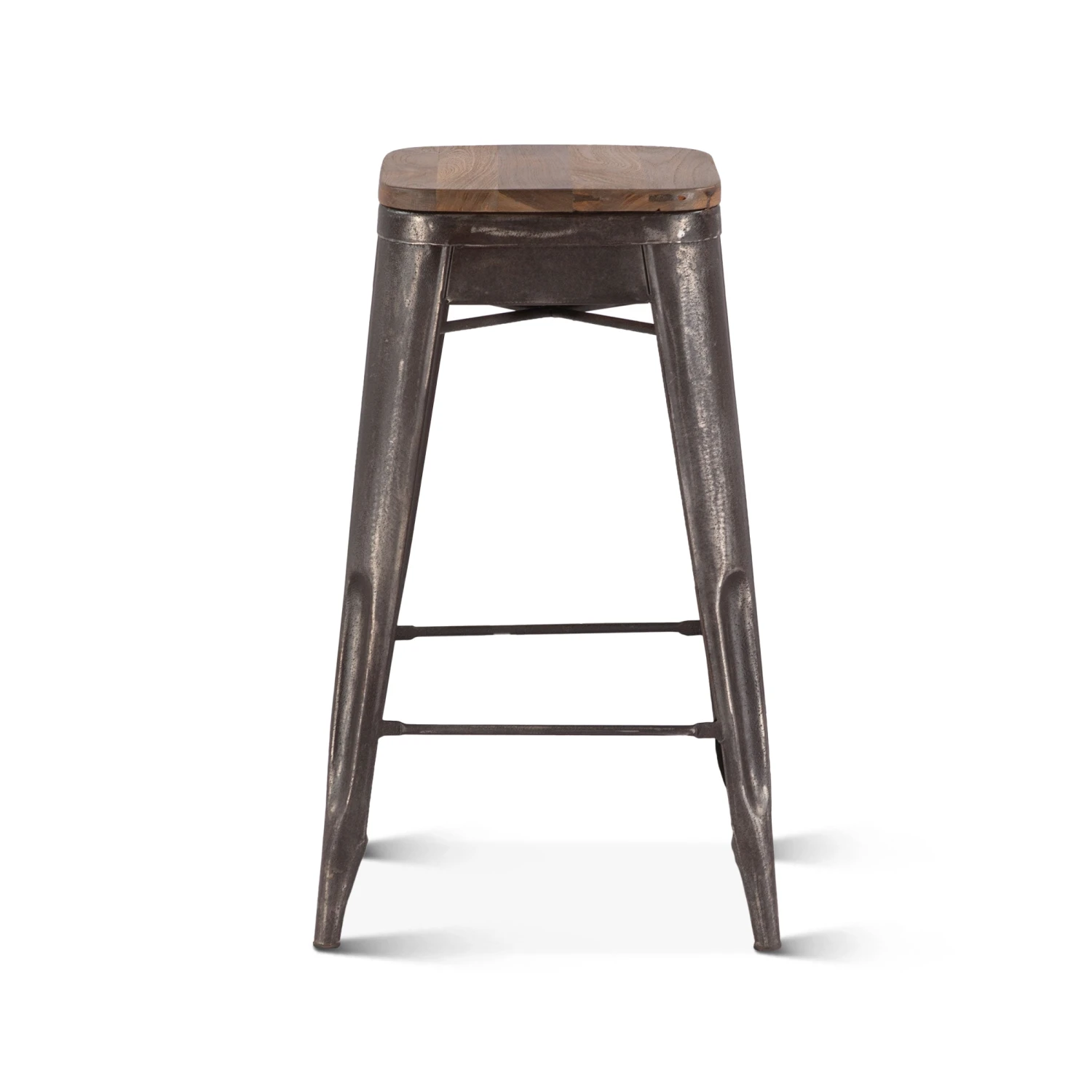 Experience the charm of French industrial design with our Rustic Revival collection, crafted to perfection with a perfect balance of rustic and contemporary styles. Crafted with a reclaimed iron base and a sleek teak wood top, this industrial modern counter stool is perfect addition to any dining space. No assembly required.