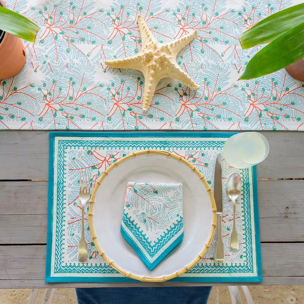 Spring has sprung in this fun teal and coral pattern on a creamy ivory background. Sea Fan is unlike any other pattern you’ve seen.