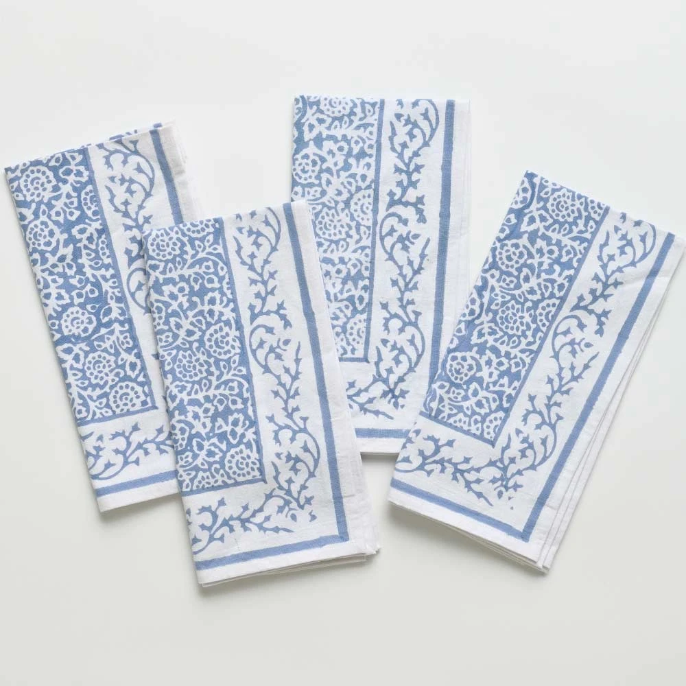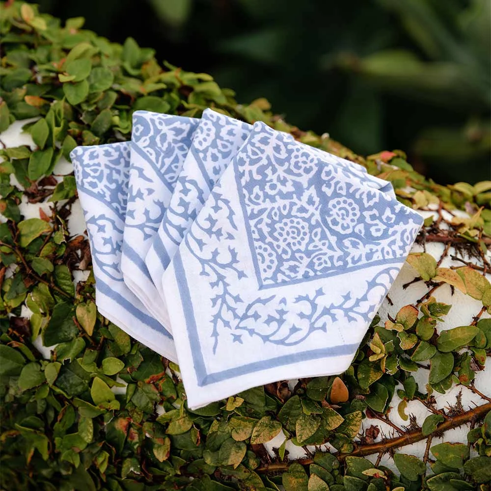 This updated traditional classic blue and white hand block printed, Tapestry Blue napkin was designed to symbolize the weaving of stories that are shared during meals. Explore conversations with family, friends, and guests that remind us of the beauty of details and encapsulates the tapestry of your entertaining
