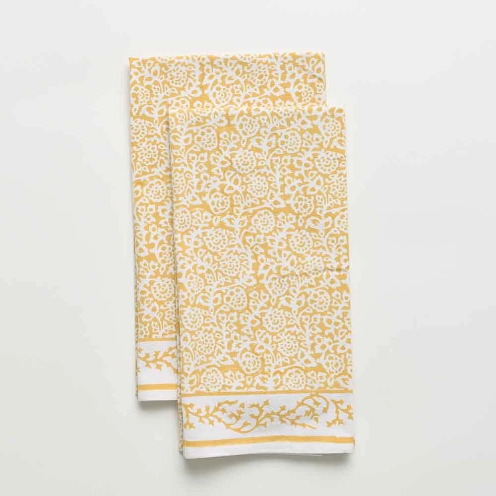 Our Tapestry Marigold Tea Towel was designed to symbolize the weaving of stories that are shared during meals. Explore conversations with family, friends, and guests that remind us of the beauty of details and encapsulates the tapestry of your entertaining.