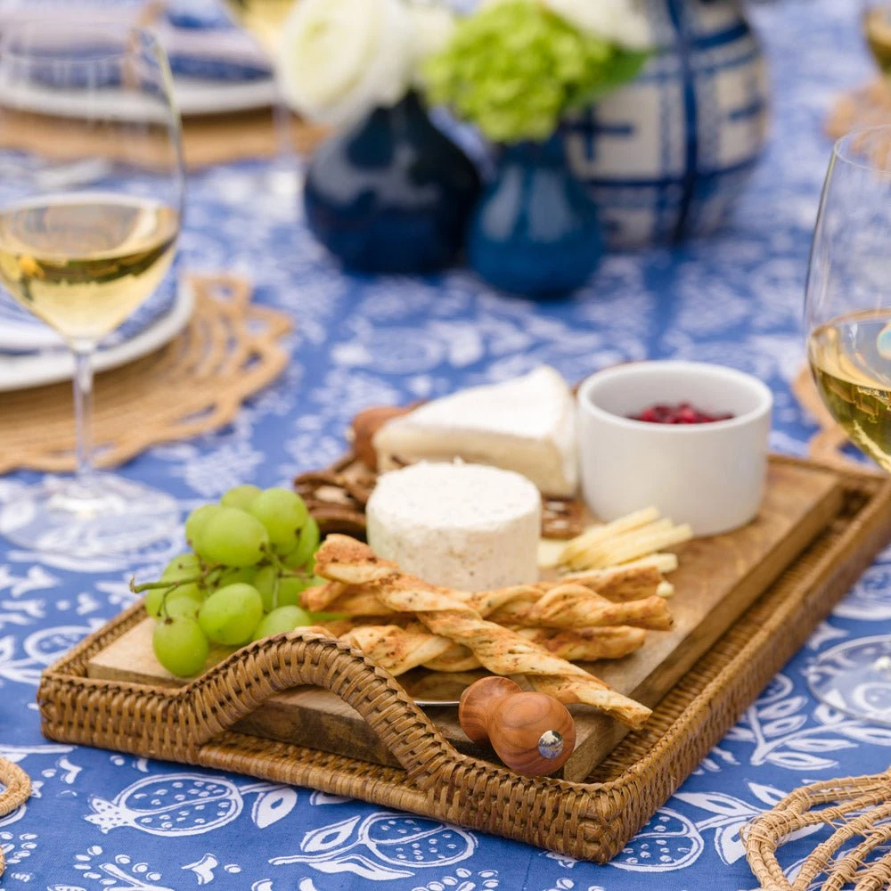 Woven Rattan Tray With Rainbow Handle